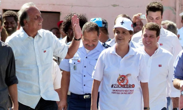 Dilma e o governador Luiz Fernando Pezão na mobilização contra o Aedes aegypti em Santa Cruz, Zona Oeste do Rio - Foto: Marcelo Carnaval / Agência O Globo